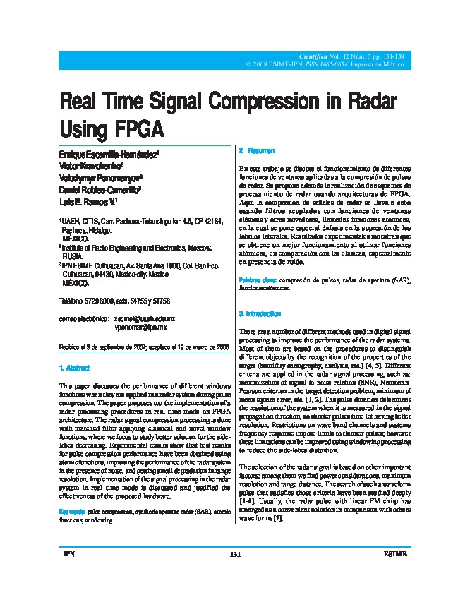 Enrique Escamilla Hernández, E. E. et al. (2008). Real Time Signal Compression in Radar Using FPGA. Científica: La Revista Mexicana de Ingeniería Electromecánica, 12(3), pp. 131-138.