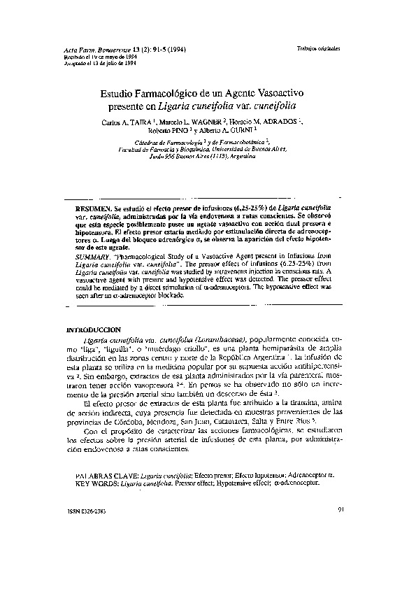 Gurni, A. et al. (1994). Estudio farmacológico de un agente vasoactivo presente en Ligaria cuneifolia var. cuneifolia. Acta Farmacéutica Bonaerense, 13 (2), pp. 91-95.