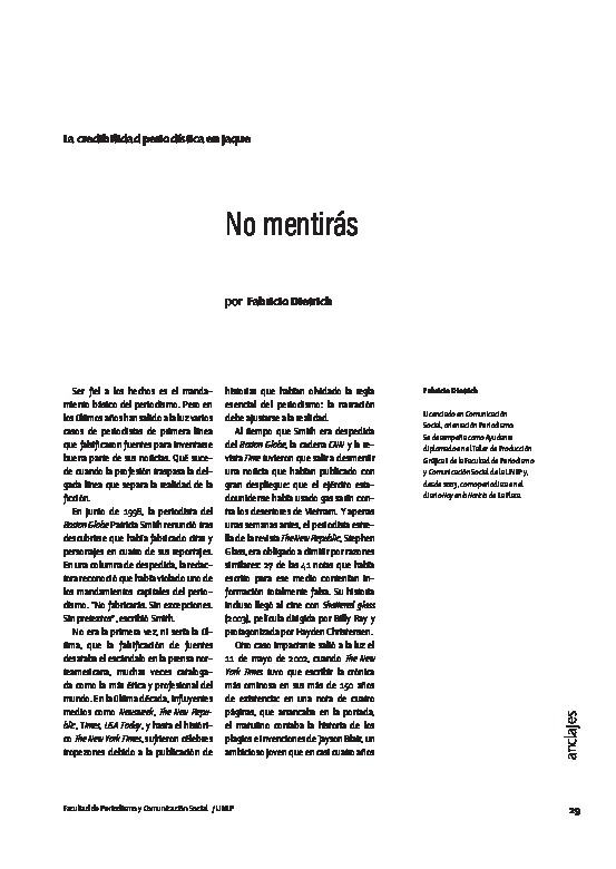 Dietrich, F. (2008). No mentirás. Tram[p]as de la Comunicación y la Cultura, (60), pp. 30-32