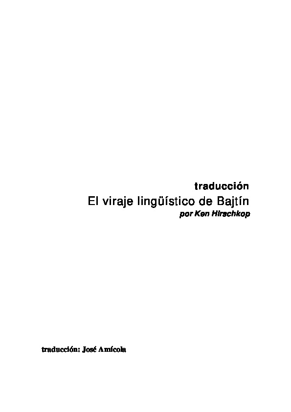 Amícola, J. (2004). Ken Hirschkop. “El viraje lingüístico de Bajtín”. Orbis Tertius, nro. 10, pp. 1-12.