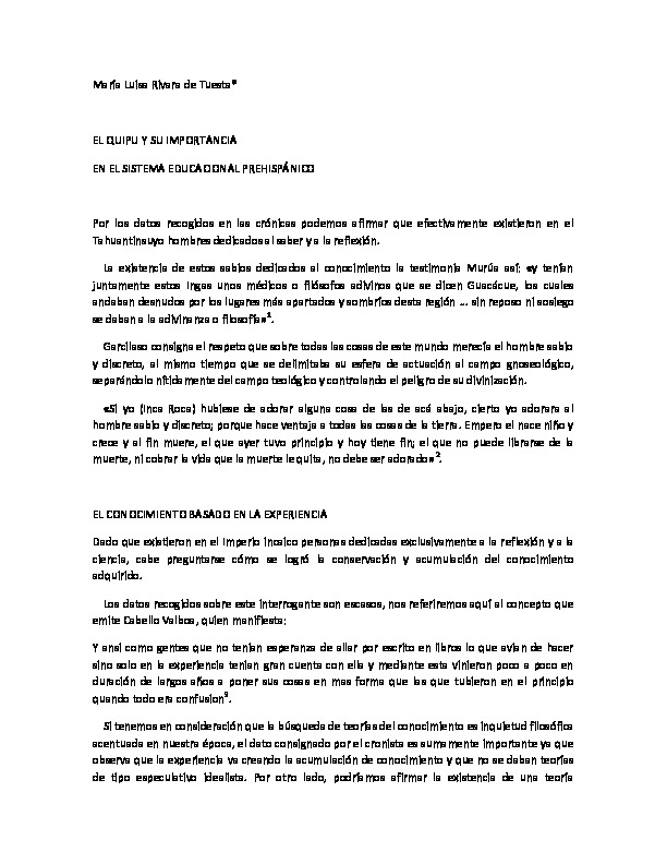Rivara de Tuesta, M. L. (2000). El quipu y su importancia en el sistema educacional prehispánico. Logos Latinoamericano, 5, pp. 22-36.