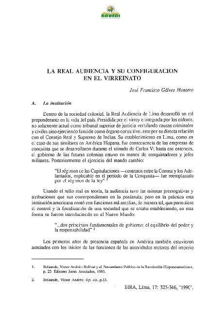 Gálvez Montero, J. (1990). La Real Audiencia y su configuración en el virreinato. Boletín del Instituto Riva Agüero, Nro. 17, pp. 325-346.