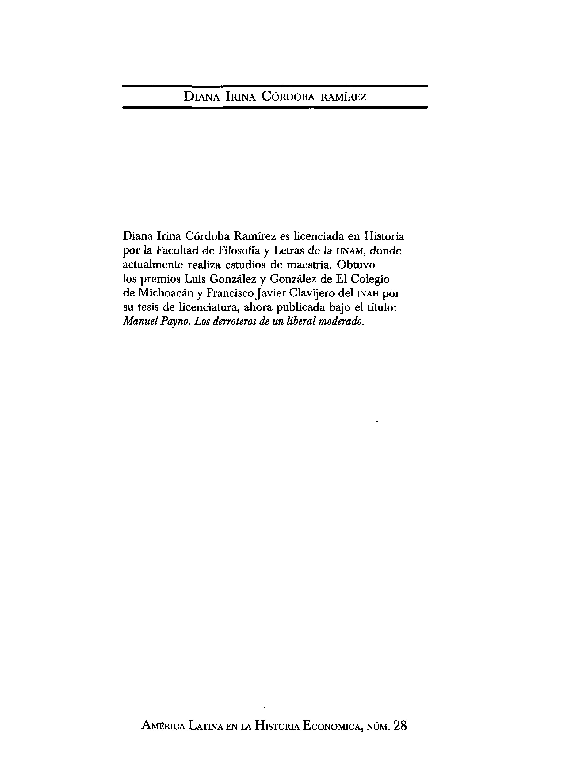 Córdoba Ramírez, D. (2007). Empresas, especulación y política al mediar el siglo XIX: El caso de Manuel Payno. América Latina en la Historia Económica, 14 (2), pp. 61-84.