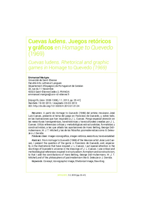 Marigno, E. (2013). Cuevas ludens. Juegos retóricos y gráficos en Homage to Quevedo (1969). Hipogrifo. Revista de literatura y cultura del Siglo de Oro, 1 (1), pp. 25-41.